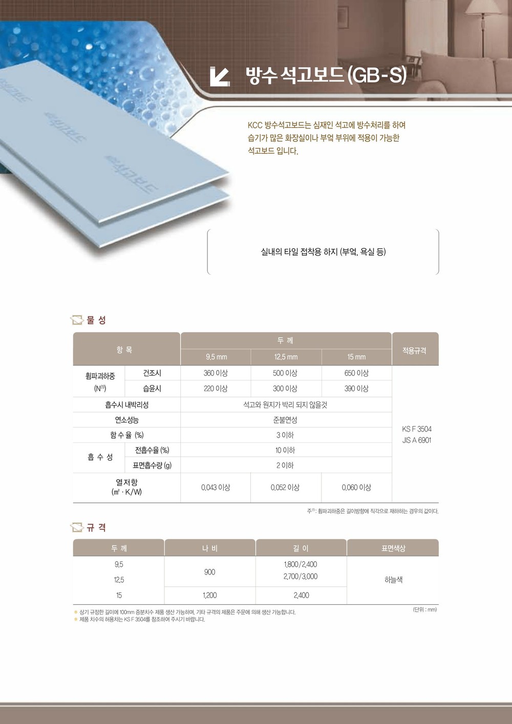 방수 석고보드 9.5T * 900 * 1800 [ 국산 ]