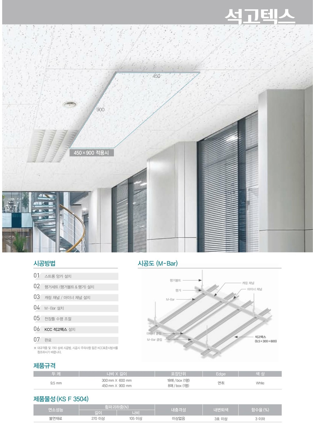 KCC 석고텍스 9.5T X 300 X 600 (18장/box) Mbar공법